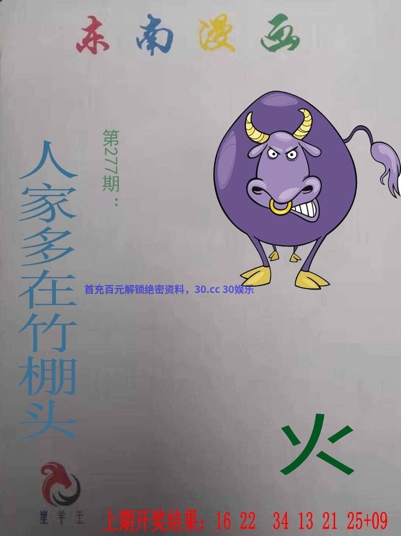 277期:今期生肖三十开,四下五上是灵码。三千佳丽住后宫,火中有肖是五七。风流才子俏佳人,玄机道破点三二。一语双关话特码,二七美女大家求。 |